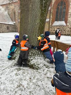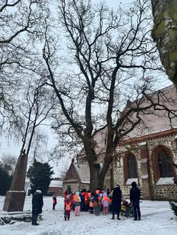Mit großer Freude hat unsere Kita die Patenschaft für eine beeindruckende, alte Eiche auf dem Kirchplatz übernommen. Die mächtige Stieleiche wird nun regelmäßig von unseren Kindern besucht und steht im Mittelpunkt eines ganzjährigen Naturprojekts.