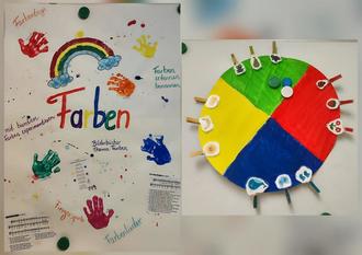 In den letzten Wochen beschäftigten sich die Mäuse (Krippenkinder) mit den verschiedensten Farben. Jeden Freitag gab es zu jeder Farbe einen entsprechenden Kleidertag, an dem beispielsweise alle in rot, gelb oder blau in die Krippe kamen.