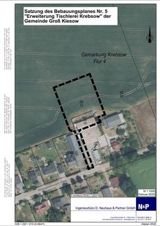 Die Aufstellung des Bebauungsplanes Nr. 5 „Erweiterung Tischlerei Krebsow“ der Gemeinde Groß Kiesow erfolgt im Regelverfahren.