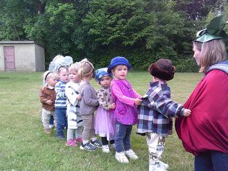 Auch unsere Krippenkinder sind fleißig und spielen das Märchen vom „Rübchen“ nach.
