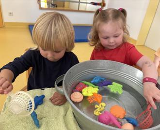 Anschließend folgte die Wasserwoche. Hier konnten die Kinder nach Herzenslust mit Wasser spielen, experimentieren und im Pool baden. Der Höhepunkt war das Neptunfest: