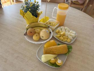Zum Auftakt stand die Farbenwoche auf dem Programm. Jeden Tag drehte sich alles um eine andere Farbe. Die Kinder kamen in passender Kleidung, bastelten und experimentierten mit Farben. Auch beim Frühstück griff die Kita das Thema auf: Obst und Gemüse in der jeweiligen Farbe machten den Tag noch bunter und luden zum Probieren ein.