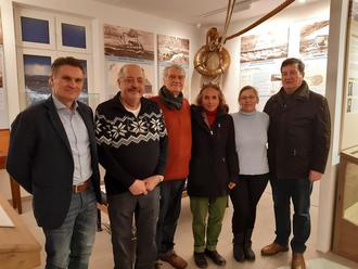 Werden zukünftige Aufgaben gemeinsam angehen. v.l.n.r. Andreas Heinemann, Geschäftsführer der Tourimusgesellschaft m.b.H. Kap Arkona, Dieter Stübe, Ernst Heinemann,Angela Münster (Vorstandsmitglieder des Fördervereins) Iris Möbius, Bürgermeisterin der Gemeinde Putgarten und Holger Neidel - Vorstandsmitglied des Fördervereins