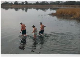 3 Wagemutige Fans beim diesjährigen Anbaden.