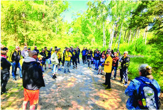 Interessiert verfolgen die Teilnehmer der Bugwanderung den Ausführungen des Wanderleiters Dieter