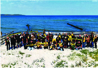 Auch, wenn es in diesem Jahr wieder nicht geklappt hat, Deutscher Meister zu werden, hatte der 1. BVB - Fanclub Rügen auch in diesem Jahr ein zünftiges Sommerfest geplant. Nach Ralswiek, Hiddensee, Kap Arkona und Stralsund fanden die Feierlichkeiten diesmal am 09. und 10.06. auf dem Bakenberg in der Nähe des Schwalbennestes statt. Insgesamt 110 Mitglieder nahmen die Einladung war. Von den befreundeten Fangruppen kamen in diesem Jahr Vertreter der Borussensailors aus Hamburg, der Nordthüringer Borussen (NTB) aus Mühlhausen, der Nordlicht Borussen aus Oldenburg, der Borussensterne aus Dortmund und Andre von den Zittauer Borussen. Der erste Abend sah das Begrüßen und gegenseitige Kennenlernen unter Nutzung des reichhaltigen Getränkeangebots vor. Der Zweite Tag begann dann mit einem Paukenschlag. Geplant war eine Wanderung durch den Nationalpark Vorpommersche Boddenlandschaft. Mit so einem Interesse hat keiner gerechnet. Ca. 25 Autos mit 70 Personen fuhren durch Dranske zum Bug und wurden dort vom Vereinsmitglied Dieter empfangen, Nachdem die Autos ordnungsgemäß geparkt wurden, stellten sich alle Teilnehmer im Halbkreis auf und verfolgten mit großem Interesse den anfänglichen Ausführungen von Dieter und begaben sich dann zu einem 5 Kilometer langen Fußmarsch vorbei am ehemaligen Landflugplatz, dem Teerhafen und dem steinreichen Strandabschnitt.