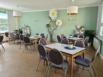Das Projekt „ Schülercafe“ gelang durch die Umgestaltung des ehemals von der Volkssolidarität genutzten Raumes zu einem Schülertreffpunkt. Unter der Federführung unserer Schulsozialarbeiterin, Frau Matthes, wurde der Raum mit einer Küche, Sitzgelegenheiten und Tischen ausgerüstet. Bedingung der Förderung durch das Bundesministerium für Bildung und Forschung (1000 € über die spendenfinanzierte Stiftung „Bildung“) war der Aspekt der Nachhaltigkeit. Deshalb wurde eine gebrauchte Küche gekauft. Sitzmöbel, Geschirr, Gläser und Besteck stellte das Hotel „Am Wasser“ Breege zur Verfügung. Mit einem frischen Anstrich, der sich farblich von den Klassen- und Fachräumen unterscheidet, neuen Lampen und Faltrollos waren die groben Arbeiten abgeschlossen.