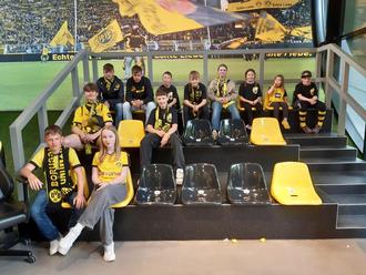 Die Dransker Delegation erreichte nach 8 Stunden Auto-Fahrt gegen 17.00 Uhr das Ziel und nach dem Einschecken wurde sofort das reichhaltige Freizeitangebot (Tischtennisplatte, Trampolin, Hindernisstrecke und Bolzplatz) in Beschlag genommen. Am 17.05. ging es nach dem Frühstück in Kolonnenfahrt nach Dortmund und der erste Weg führte uns zum Fan-Shop von Borussia Dortmund. Ein reichhaltiges Angebot lud zum Kauf von Fan-Artikeln ein, was natürlich auch mit hohen finanziellen Aufwand genutzt wurde. Aber wann hat man schon die Gelegenheit, sich stilgerecht zu kleiden. Bis zur Öffnung des Stadions hielten sich alle vor dem Eingang des REWE-Familienblocks auf, wo die Kids und deren Begleitung mit gekonnten Fußballpassagen auf sich aufmerksam machten. Auch kam es hier zu herzlichen Begegnungen mit anderen Mitgliedern des 1. BVB-Fanclubs Rügen, die ebenfalls zum letzten Punktspiel angereist sind.