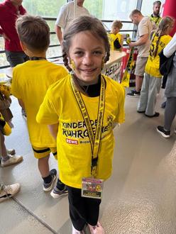 Punkt 13.00 Uhr öffneten sich die Pforten zum Stadion und die Kinder erlebten zum ersten mal eine gründliche Kontrolle und Durchsuchung durch die Sicherheitskräfte. Bevor die Sitzplätze eingenommen wurden, wurden auch hier die vielen Angebote im Vorraum zum Familienblock, wie Spiele, Speisen und Getränke, genutzt. Für Isabel von den Borussen-Kids gab es dann noch eine große Überraschung. Sie wurde ausgewählt, mit 13 anderen Kindern als Fahnenkind beide Mannschaften auf dem Rasen vor 81.365 Zuschauern zu begrüßen. Für sie ein unvergessliches Erlebnis, aber auch die anderen Kinder waren von der einmaligen Kulisse überwältigt und freuten sich über den 3:0 Sieg der eigenen Mannschaft, was in der nächsten Saison zur Teilnahme an der Champions League berechtigt.