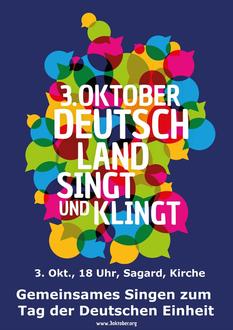 | 18 Uhr | Kirche Sagard: Festakt zum Tag der Deutschen Einheit, Beliebte Lieder zum Mitsingen für alle. Mitwirkung des Sagarder Kirchenchores und Band |