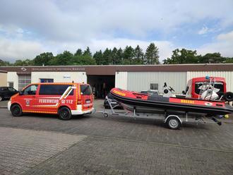 Am 18.08.2023 holten zwei Kameraden das neue Schlauchboot RTB2 mit dem dazu passenden Trailer aus Bad Lippspringe, eine Stadt in Nord- Westfalen, ab.