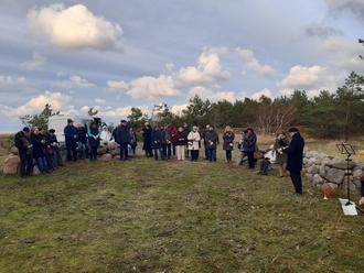 Aus diesem Anlass luden die evangelische Kirchengemeinde Nord – Rügen und die Gemeinde Dranske unterstützt durch den Verein Deutsche Kriegsgräberführsorge zu einem Gottesdienst zur Kriegsgräberstätte auf der Halbinsel Bug ein. An den beiden Gedenksteinen, die an 78 namentlich erwähnten Flüchtlinge erinnern, die im Winter 1945/46 an den Folgen von Krieg, Flucht, Hunger, Entkräftung und Typus starben, fanden sich 40 trauernde Gäste ein, um diesen Tag gemeinsam zu begehen. Umrahmt von einer Bläsergruppe ging Pastor Christian Ohm aus Altenkirchen in seiner Predigt auf die schlimmsten Zeiten deutscher Geschichte, die beiden Weltkriege, die Nazidiktatur, aber auch auf die Konflikte, Gewaltausbrüche und Kriege der Gegenwart ein. Frieden ist das Gebot der Stunde. Dieser Wunsch war wesentlicher Inhalt der Predigt und dem gemeinsamen Gebet. In einer Schweigeminute gedachten alle Anwesenden der gefallenen Soldaten und getöteten Zivilisten und bekundeten ihre Anteilnahme mit der Hinterlegung eines Steines an der Kriegsgräberstätte. Als Zeichen der Anteilnahme, Erinnerung und Ehrung legten Vertreter der Gemeinde Dranske einen Kranz nieder. Zum Abschluss der Gedenkfeier kam es bei einem von Familie Spreer angerichteten Buffet mit Kaffee, Glühwein, Kuchen und Fischschnittchen zu angeregten Gesprächen.