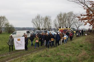 Mehr als 300 Bürgerinnen und Bürger haben am 15. April an der ersten Protestwanderung gegen die im Kyritzer Ortsteil Holzhausen geplante Bauschuttdeponie teilgenommen, darunter auch Landrat Ralf Reinhardt, die Kyritzer Bürgermeisterin Nora Görke, Neustadts Amtsdirektor Andreas Schumacher, die Landtagsabgeordneten Katja Poschmann und Clemens Rostock, der Holzhausener Ortsvorsteher Andreas Lange sowie die Kreistagsabgeordnete und ehrenamtliche Bürgermeisterin von Zernitz-Lohm, Sigrid Schumacher, die zugleich auch Sprecherin der Ende März gegründeten Bürgerinitiative "Nein zur Deponie" ist.