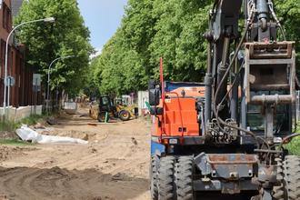 Gut voran schreiten die Sanierungsarbeiten an der Pritzwalker Straße. Der Kanalbau ist jetzt abgeschlossen. Das heißt, die Anlagen für die Niederschlagsentwässerung sowie die Schmutz- und Trinkwasserleitungen wurden komplett erneuert. Es werden jetzt die Borde gesetzt. Dann wird der Unterbau, die tragfähige Basis für die Fahrbahndecke, angelegt. Darauf folgt der Asphaltbau.