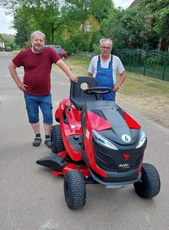 Der Baubetriebshof Kyritz hat am 8. Juni für die Grünflächenpflege im Ortsteil Teetz einen neuen Rasentraktor an den Grünflächenpfleger Arno Schmidt und den Ortvorsteher Torsten Gerloff übergeben.