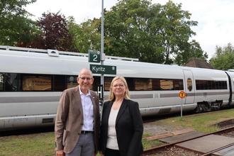 Die außergewöhnliche Fahrt des so genannten "advanced TrainLab" der Deutschen Bahn, der zu Messzwecken am 13. September von Güstrow über Karow, Pritzwalk und Kyritz bis nach Neustadt (Dosse) eingesetzt wurde, war Anlass für viele Menschen, sich noch einmal für den Erhalt dieser Nord-Süd-Bahnverbindung einzusetzen. Und mal ehrlich: Ein solcher Zug mit der Anmutung eines ICE auf dieser Strecke - symbolisiert dies nicht auch eine wunderbare Zukunftsvision? Jedenfalls konnte die Messfahrt dazu genutzt werden, sich erneut für den Erhalt und den Ausbau des Schienenverkehrs im nordwestlichen Brandenburg bzw. südlichen Mecklenburg einzusetzen. Bei der Fahrt des "advanced TrainLab" war auch entsprechend viel politische Prominenz an Bord, um gemeinsam mit den Menschen aus zwei Bundesländern und fünf Landkreisen bei zwei Halten in Karow und Pritzwalk für die Umsetzung des Konzeptes 'Karower Kreuz 365+' zu werben, soll heißen die Schaffung einer alternativen westlichen Bahn-Verbindung von Berlin nach Rostock mit entsprechenden Knotenpunkten in Pritzwald und Karow.