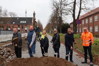 Mit einem symbolischen 1. Spatenstich begann am Freitag, 8. November, die Sanierung der Pritzwalker Straße in Kyritz. Begonnen wurde mit dem Abschnitt zwischen der Ampel-Kreuzung Perleberger Straße / Pritzwalker Straße und der Mitte des Grundstücks des Azurit-Seniorenzentrums. Seit Freitag, 9. November, ist dieser Bereich für den Fahrzeugverkehr voll gesperrt.