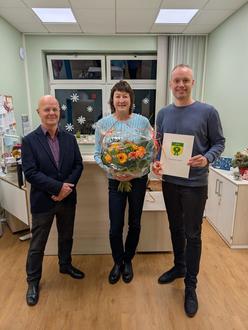 Zu diesem besonderen Anlass gratulierten der Amtsvorsteher Jörg Haase sowie der Schulverbandsvorsteher Tino Waldraff persönlich. Beide würdigten in ihren kurzen Ansprachen nicht nur das langjährige Engagement von Frau Pohl, sondern auch ihre stets freundliche und hilfsbereite Art, die sie im täglichen Kontakt mit Schülern, Eltern und Lehrkräften auszeichnet.