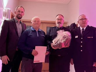 Nach der Ansprache unseres Wehrführers und des Bürgermeisters, gab es die Ehrung für 40 Jahre Mitgliedschaft in der Feuerwehr für unseren Kameraden Harry Oleschkewitz.
