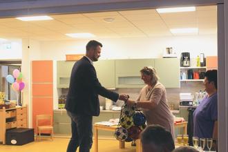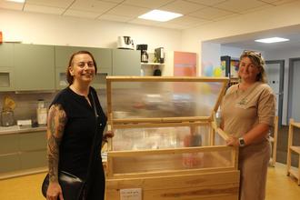 Die Kitaleiterin, Jeanine Kindel, der Kita „Kleine Dorfgeister“ in Dalberg nahm dies zum Anlass ihre Glückwünsche zum Neubau auszurichten und überreichte Grit Petersohn ein Hochbeet zum Gärtnern mit den Kindern.