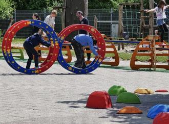 Das schöne Wetter sorgte dafür, dass die Kinder bei vielen sportlichen Aktivitäten, wie z.B. einem Parcours, Bewegung mit dem Hula-Hoop-Reifen ganz viel Spaß haben konnten.