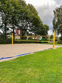 Das Beachvolleyballfeld hat nun eine permanente Netzvorrichtung, welche flexibel in der Höhe verstellbar ist, so dass auch Beach-Badminton oder Fussballtennis gespielt werden kann. Weiterhin neu zu entdecken ist der frisch feriggestellte einkörbige Basketballplatz. Die gepflasterte Spielfläche beinhaltet ein Schachbrettmuster, welches auch für das klassische Dame- oder Schachspiel genutzt werden kann.