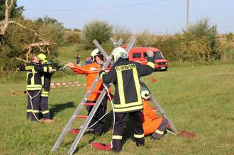 Bei bestem Wetter mussten dort verschiedene Stationen absolviert werden, die dann bewertet wurden. So gab es bei den aktiven Kameraden und Kameradinnen zum Beispiel die Stationen