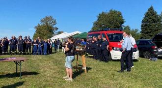 Feierliche Übergabe des Amts-ELW am 16.09.2023 während des Amtsausscheides der Feuerwehren des Amtsbereiches des Amtes Lützow-Lübstorf durch den Amtsvorsteher, Herrn Rainer Kloth, und die Fachdienstleiterin für Sicherheit und Ordnung, Frau Weber
