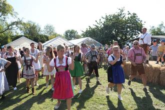Die Festlichkeiten erstreckten sich über die Fläche der Immenweise, wo Festzelte, eine Bühne, die von Strohballen umrahmt wurde, sowie verschiedene Imbiss- und Getränkestände aufgebaut waren. Für die jüngsten Besucher lockte bereits von weitem eine riesige Hüpfburg, die zum Toben einlud. Es gab auch Bogenschießen, Entenangeln, ein Maßkrughalten-Wettbewerb und viele andere Spiele, bei denen sich sowohl Kinder als auch Erwachsene so richtig austoben konnten. Das Dorffest hatte sich in den umliegenden Gemeinden herumgesprochen, weshalb bis zu 350 Menschen auf das Festgelände strömten, um das Spektakel zu genießen.