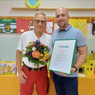 „Volker, du bleibst immer ein gern gesehener Gast. Wir danken dir für die jahrelange, zuverlässige und angenehme Zusammenarbeit an unserer Grundschule. Bleib gesund und bis bald“ – mit diesen Worten verabschiedeten wir den Hausmeister.