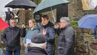 v. l. n. r.: Bürgermeister der Gemeinde Alt Meteln Herr Zobjack, Frau Schulz, Kirchengemeinde Alt Meteln-Cramon-Groß Trebbow Pastor Seefeld, Vorsitzender des Volksbundes Deutsche Kriegsgräberfürsorge Regionalverband Nordwestmecklenburg Herr Dr. Uhlmann