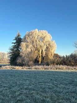 Reif bedeckt am Morgen unsere Landschaft und hier und da sind auch schon die ersten Schneeflocken gefallen.