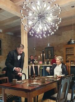 Das Beste kommt zum Schluss, besagt eine alte Volksweisheit. So hat man es auch in der letzten Woche des Jahres auf dem Schelbrookhof in Letschow gehalten. In ihren letzten Veranstaltungen bot der Kulturhof an drei Tagen einen Leckerbissen mit einem „Dinner for One“. Dieser seit 1972 regelmäßig zum Jahreswechsel im Deutschen Fernsehen gezeigte Sketsch wird von annähernd 15 Millionen Zuschauern am Silvesterabend gesehen. Im Guinness-Buch der Rekorde wird er als … „weltweit am häufigsten wiederholte Fernsehproduktion“ geführt. In Letschow wurde das Dinner von Thomas Wiesenberg als Butler James für Dürten Thielk als Miss Sophie zum 90. Geburtstag serviert. Beide sind ausgebildete Schauspieler. Dürte Thielk, aufgewachsen in Ziesendorf, studierte an der Stage School in Hamburg. Der Cottbuser Thomas Wiesenberg erlangte seine Ausbildung an der HMT in Rostock. Beide Schauspieler sind bundesweit mit Soloprogrammen unterwegs. Aber nicht nur den imaginären Gästen von Miss Sophie, Sir Toby, Admiral von Schneider, Mister Pommeroy und Mister Winterbottom wurden delikate Speisen serviert. Auch die annähernd 50 Gäste an jedem Abend erhielten ein Menü aus 3 Gängen nebst edlen Getränken. So endete das Kulturprogramm des Jahres 2022 auf dem Schelpbrookhof mit einem kulinarischen Silvestersketsch.