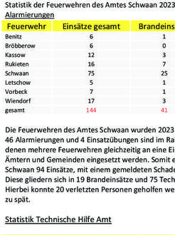 Einsätze der Feuerwehren des Amtes Schwaan - Dezember 2023