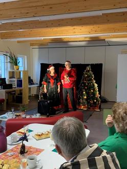 Mit viel Humor und emotionalem Tiefgang haben Katja Nottke und Nicolai Preiß unsere Gäste auf das Weihnachtsfest eingestimmt. Sie spielten Sketche, sangen und haben humorvolle Gedichte vorgetragen. Alles mit einem Augenzwinkern. Es wurde mitgesungen, gelacht und nachgedacht.