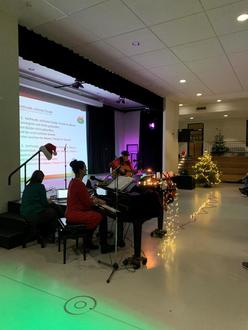 Bekannte Weihnachtslieder ertönten aus vollen Kehlen, begleitet mit Gitarre und Klavier. Glühwein und Schmalzbrot in der Pause wurde vom MGH angeboten.