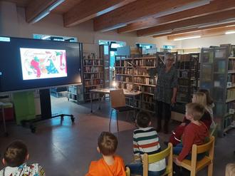 Das Wintermärchen „Kalt erwischt“ von Anja Fröhlich konnten die Kinder eigenständig lesen und die Illustrationen am großen Bildschirm verfolgen.