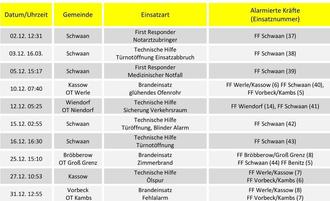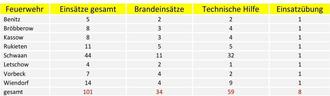 36 Alarmierungen sind im Rahmen der nachbarlichen Löschhilfe anzusehen, bei denen mehrere Feuerwehren gleichzeitig an eine Einsatzstelle gerufen oder überörtlich in anderen Ämtern und Gemeinden eingesetzt werden. Somit ergeben sich für das vergangene Jahr 2024 im Amt Schwaan 65 Einsätze, mit einem gemeldeten Schadensereignis.