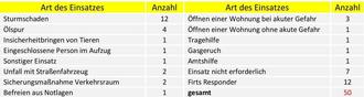 Diese gliedern sich in 16 Brandeinsätze und 50 Technische Hilfeleistungen.