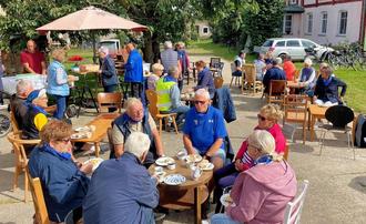 In Benitz haben wir uns noch mal kurz gesammelt, bevor es in Richtung Schwaan weiterging. Der Weg war durch die kurzen Berge ziemlich anstrengend und kostete den Fahrradfahrern viel Kraft. In Schwaan auf dem Hof des Bürgervereins angekommen wurde wieder richtig Luft geholt bei gegrilltem Essen und erfrischenden Getränken. Die Auswertung an den Tischen war dann aber sehr positiv und vollen Lobes an die Organisatoren. Es wurde viel gelacht und dieses und jenes zum Besten gegeben. Bemerkenswert war, dass alle Teilnehmer sich Zeit nahmen, diese Runde zu genießen und sich dann voller Dankbarkeit bei den Organisatoren mit den Worten – bis zum nächsten Mal – verabschiedeten.
