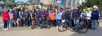 Unsere Tour startete pünktlich um 10 Uhr und zog sich in langer Schlange durch Schwaan über die Lügenbrücke weiter in Richtung Letschow bis Bandow zur ersten Pause. Die Bewältigung der Strecke war unterschiedlich anstrengend durch die Nutzung von Fahrrädern und E-Fahrrädern.