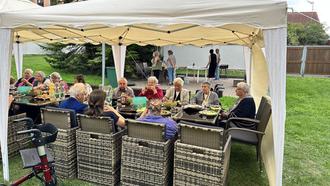 In einer idyllischen Umgebung im Garten, umgeben von Blumen und Grün, versammelten sich die Bewohner des Betreuten Wohnens und die Mitarbeiter der Sozialstation Schwaan. Ein köstliches Menü wurde serviert, darunter selbstgemachter Kartoffelsalat, herzhafte Bratwürstchen, knusprige Baguettes und leckere Spieße, die von allen Anwesenden genossen wurden.