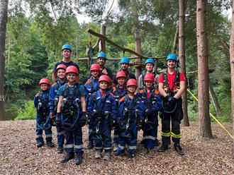 Der Samstag begann rechtzeitig, da es zu Fuß vom Gerätehaus der Feuerwehr zum Kletterwald in Schwaan ging. Hier erwartete die Kinder ein kunterbuntes und umfangreiches Programm. Beim Klettern durch die Baumwipfel, beim Bogenschießen, bei simulierten Löschangriffen auf dem Platz oder bei Erlebnis- und Umweltspielen im Wald hatten die Kinder sichtlich Spaß. Zur Stärkung gab es leckeren Wurstgulasch aus der Gulaschkanone vom Versorgungstrupp der Feuerwehr Bützow.