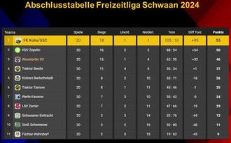 Das runde Leder in der Freizeitliga Schwaan ruht ab sofort und der WSV kann ein positives Fazit ziehen. Auch wenn den Wiendorfern als Verein etwas Zulauf von Spielern der jüngeren Semester fehlt und mit einem Altersdurchschnitt von 38,5 Jahren zu den betagtesten Truppen der Freizeitliga gehören, schaffen die Jungs es Jahr für Jahr durch eine mannschaftliche Geschlossenheit und die breite Anhängerschaft eine gute Rolle in der Liga zu spielen. Im Jahr 2024 belegte man am Ende den dritten Tabellenrang und konnte den nächstplatzierten ganze 9 Punkte hinter sich lassen. Die inoffizielle Meisterschaft des Amtes Schwaan gehört damit auch den Wiendorfern, da die Mannschaften aus Schwaan, Werle-Kassow und Benitz allesamt hinter dem WSV eingelaufen sind. Die Wiendorfer starteten etwas holprig in die Saison und unterlagen zum Saisonauftakt dem bis dato amtierenden Meister aus Zepelin mit 2:4. Ende April dann ein etwas größerer Rückschlag als man in der englischen Woche (man hatte einer Spielverlegung gegen Werle zugestimmt) verdient in Güstrow bei den Kickerz mit 1:4 verlor. Dieses Ergebnis sollte den WSV aber nicht daran hindern, in der darauffolgenden Woche den Favoriten vom FK Kuhs/GSC zu Hause 2:1 zu schlagen. Ein verdienter Sieg und für die Gäste die einzige Niederlage in der Saison. Mit entsprechender Fokussierung ging es weiter und so wurde bis Saisonende fleißig Punkte gesammelt. Zwei weitere Niederlagen gab es in der Rückrunde gegen die auch am Ende der Saison vor dem WSV einlaufenden Truppen aus Kuhs und Zepelin. Ein verdienter Bronzerang aber auch ein verdienter Meister aus Güstrow, der seine Heimspiele fast ausnahmslos auf Kunstrasen ausgetragen hat. Ein Novum in der Freizeitliga und sicher auch ein Vorteil für den Meister. In der Rückschau kann man aber getrost sagen, dass die Tabelle nicht lügt und die Mannschaften vor dem WSV zu Recht da stehen, wo sie sind. Die Wiendorfer können im Laufe der Saison 8 verschiedene Torschützen aufbieten, wobei Felix Edel mit 18 markierten Treffern die interne Torschützenliste anführt. Für den WSV heißt es nun Winterpause und Freitags Fußballfreie Zeit. Das Vereinsleben und auch der Trainingsbetrieb werden allerdings nicht stillstehen. Beim WSV ist das ganze Jahr über was los und das ist es, was den Verein so besonders macht.