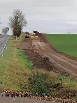 Das ursprünglich gesetzte Ziel, den Radweg noch in diesem Jahr weitestgehend zu errichten, konnte trotz aller Bemühungen, auch wegen Problemen bei einigen Ackerflächen und den daraus resultierenden erforderlichen Umplanungen des Trassenverlaufs, nicht erreicht werden. Nach Einschätzung des Baumanagements ist die Tragschicht gegenwärtig zu etwa 85 % ausgebracht.