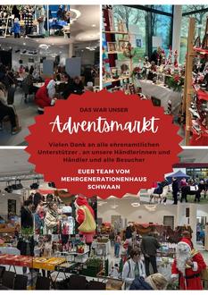 Es duftete schon beim Hereinkommen nach Kaffee nach Kuchen. Ein geschmückter Tannenbaum zierte den Eingang. Auf der Bühne lauschten die Kleinen den Geschichten von verlorenen Geschenken und mutigen Mäusen. Die vielen bunten Stände mit kreativ gestalteten Dingen und Kunstgegenständen brachten die Besucher in vorweihnachtliche Stimmung. Sie luden zum Kaufen und Bestaunen ein. Auch der Weihnachtsmann beschenkte die Kinder mit kleinen süßen Überraschungen. Am Basteltisch des Mehrgenerationenhaus hatten die ehrenamtlichen Helferinnen viele Materialien, aus denen kleine Dinge gestaltet und mit nach Hause genommen werden konnten. Es entstanden kleine geheime Geschenke für die Familien.