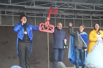 Die Route führte die bunte Truppe vom Gewerbegebiet über die Hauptstraßen, um den ortsansässigen Händlern und Gewerbetreibenden mit Musik und guter Laune einen närrischen Start in die neue Session zu wünschen. Dabei geizten die Jecken nicht mit Süßigkeiten. Die Kinder und Einheimischen an den Straßen wurden mit reichlich Kamelle versorgt. Besondere Höhepunkte waren die Besuche in sozialen Einrichtungen. Die Tanzgruppen des SCV erfreuten mit ihren Darbietungen die Bewohner des ASB Pflegeheims, der Neurokliniken Waldeck sowie die Kinder in den örtlichen Kindergärten und brachten ein Stück Ausgelassenheit in den Alltag. Der Höhepunkt des Tages fand exakt um 11:11 Uhr statt. Im Rahmen einer feierlichen Zeremonie übergab Bürgermeister Mathias Schauer symbolisch den Schlüssel des Rathauses an den Carnevalspräsidenten Carsten Jörn. Damit ist die Stadt Schwaan bis Aschermittwoch offiziell in der Obhut der rund 100 SCV-Mitglieder, die versprachen, die Geschicke der Stadt in bester närrischer Tradition zu lenken.