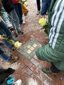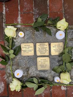 Zum Tag des Gedenkens an die Opfer faschistischer Vernichtungspolitik trafen sich die Schüler_innen der 5c der Regionalschule „Prof.-Franz-Bunke“ Schwaan, deren Lehrerin Maren Lüth, Mitglieder und Freunde des Schwaaner Kulturfördervereins am Ort der Stolpersteine Pferdemarkt 7 in Schwaan. Die Messing- Steine in Erinnerung an Paul, Willi, Paula und Alice Marcus wurden von dicker Eisschicht befreit, mit eifrigen Putz-Händen, Putzmittel und Lappen wieder sichtbar gemacht. So viele Hände drängten sich zum Mittun. Wie beruhigend, auf so viele Fragen aus der Runde Antworten geben zu dürfen. Mit beeindruckender Empathie legten die Schüler_innen am Gedenkort Blumen nieder und stellten Kerzen auf. Sie brachten Wärme, Licht und Glanz in den eisigen Wintertag.