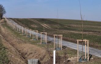 Im Januar wurde nun bei bestem Pflanzwetter mit dem Setzen der ersten Bäumchen begonnen. Ein Großteil der erforderlichen Ausgleichsmaßnahmen wird in unmittelbarer Nähe der Radwegtrasse durchgeführt. Dabei kommen ausschließlich gebietseigene Gehölze zum Einsatz. Die Auswahl der Arten erfolgt in Abhängigkeit von der Eignung des jeweiligen Untergrundes.