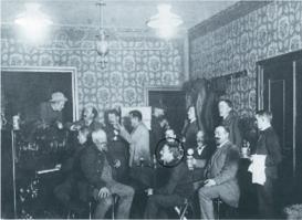Reinhold Neubert im Kreis der Künstler der Schwaaner Künstlerkolonie im Hotel Drewes, um 1900